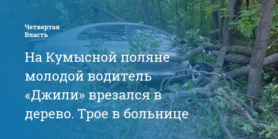 На Кумысной поляне молодой водитель «Джили» врезался в дерево. Трое в больнице