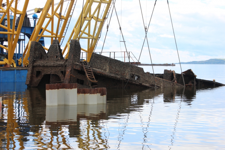 «Происходит подъем на этапе поднятия носа, откачки воды и размытие грунта, после чего судно будет поднято на поверхность. Будем целиком ставить. Все пробоины будут заделаны и откачаем воду. То есть судно пойдет своим ходом. Его поставят на воду. Для этого используется плавающие кран на 150 тонн и водолазная группа. Его дальнейшая судьба: на переработку», - отчитался главе региона Мясников.