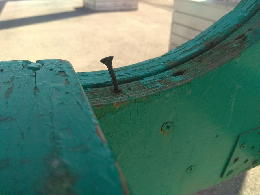 Качели на Набережной Космонавтов в Саратове стали представлять опасность для посещающих ее горожан: грозят поранить посетителя торчащими саморезами. Сам арт-объект называется как «качели для взрослых» и установили их в 2017 году.