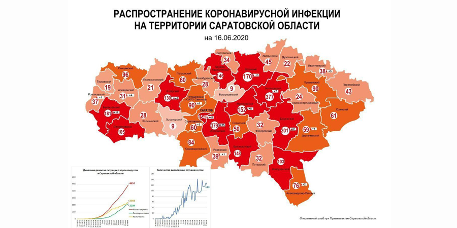 — от 50 до 99 случаев — Ртищевский, Татищевский (+ЗАТО Светлый), Пугачевский, Красноармейский, Александрово-Гайский, Озинский, Саратовский, Петровский, Дергачевский, Советский;