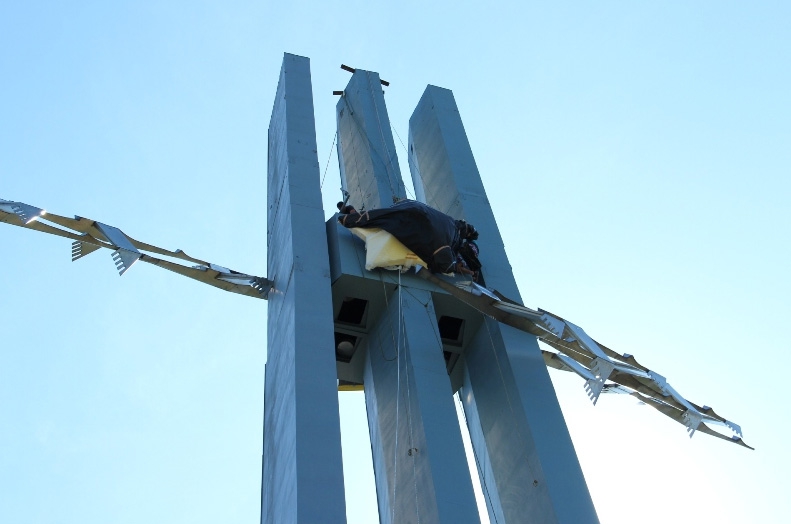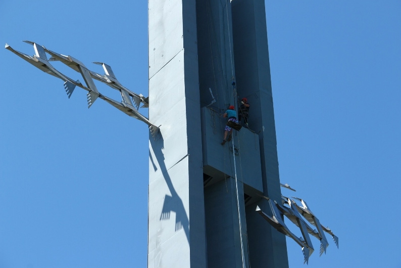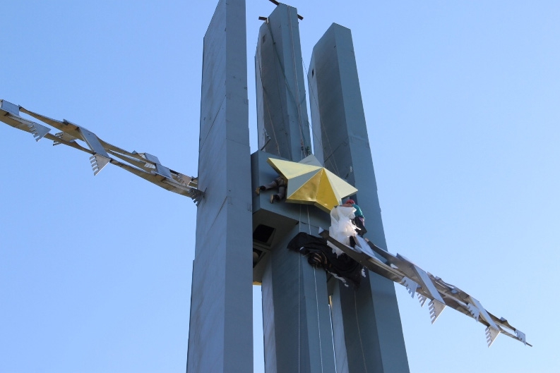 Звезду весом более 300 кг отремонтировали и покрыли сусальным золотом.
