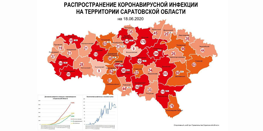 — от 50 до 99 случаев — Татищевский (+ЗАТО Светлый), Пугачевский, Красноармейский, Александрово-Гайский, Петровский, Озинский, Саратовский, Дергачевский и Советский;