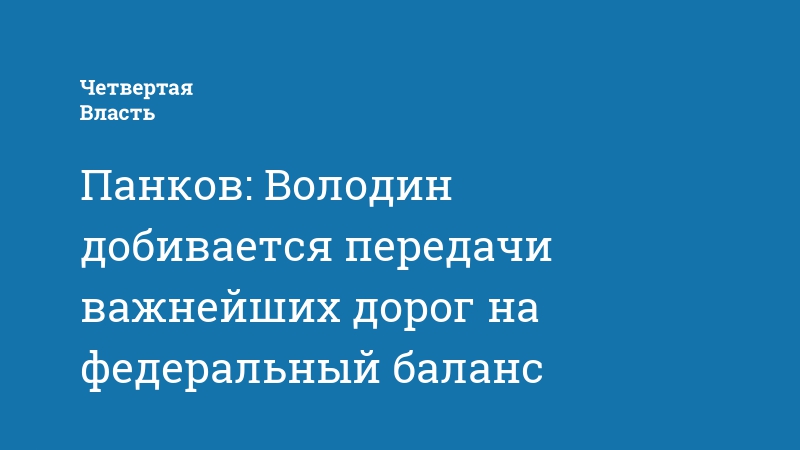 Панков: Володин добивается передачи важнейших дорог на федеральный баланс