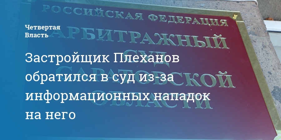 Депутат-строитель из Энгельса, руководитель «ПДПСтрой» Дмитрий Плеханов обратился в арбитражный суд с иском о защите деловой репутации. Об этом «Четвертой власти» сообщили источники, близкие к застройщику. Таким образом он отреагировал на информационные нападки в отношении него и его профессиональной деятельности.
