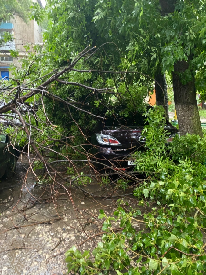 «В прошлое воскресенье крупная ветка, упавшая со старого тополя, повредила машину: помяло и поцарапало капот, крышу, оторвало зеркало заднего вида. Меня в машине, к счастью не было, я находился дома. Когда полицейские приехали и зафиксировали ущерб, я с помощью соседей сам расчищал автомобиль от упавших веток.