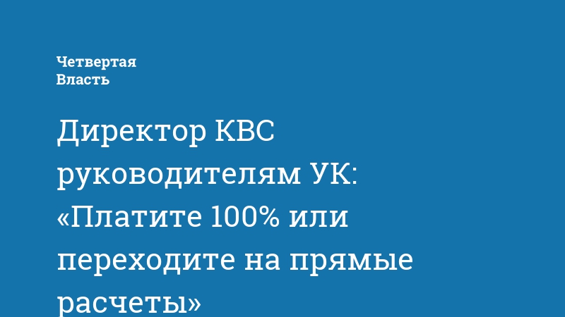 Директор КВС руководителям УК: «Платите 100% или переходите на прямые расчеты»