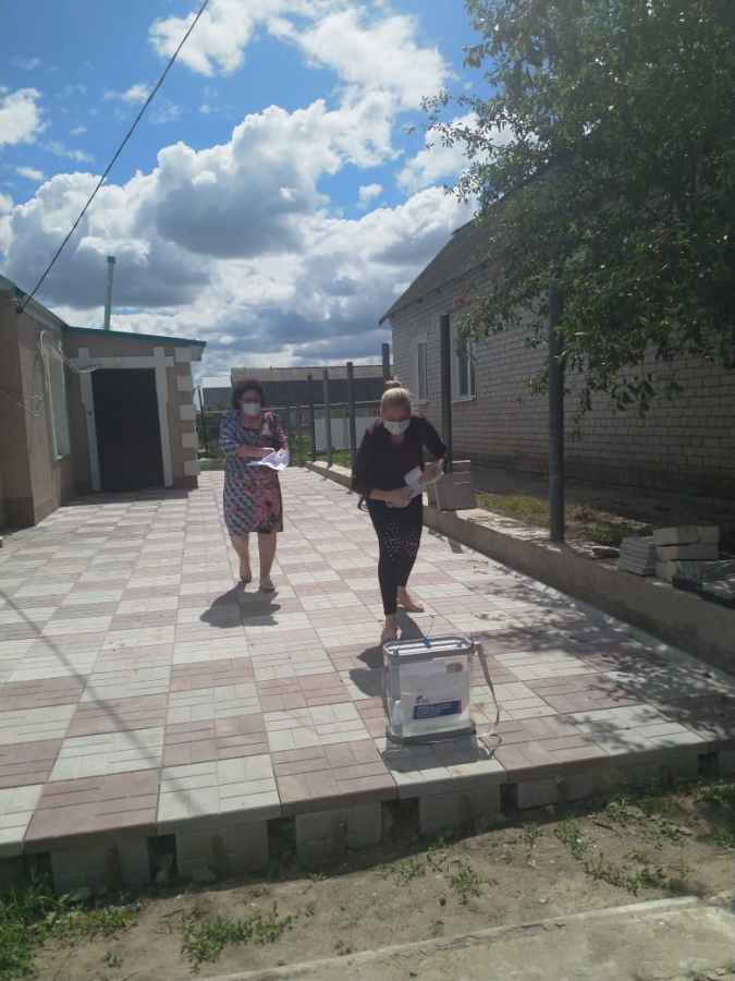 При голосовании на дому члены участковой избирательной комиссии дезинфицируют дверь, ставят близко к двери ящик для голосования и вешают на ручку полиэтиленовый пакет с бюллетенем и средствами индивидуальной защиты. В процессе голосования между участниками голосования и членами УИК соблюдается санитарная дистанция.