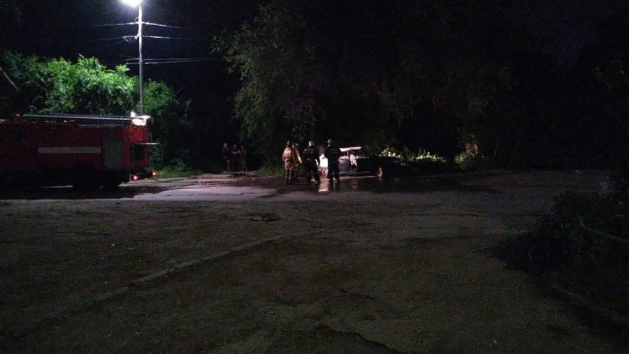 Сообщается, что машина была припаркована в районе дома №3/1. Пожар начался внезапно и прозвучало два взрыва.