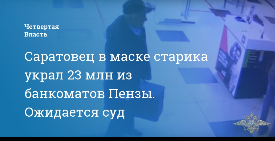 Саратовец в маске старика украл 23 млн из банкоматов Пензы. Ожидается суд