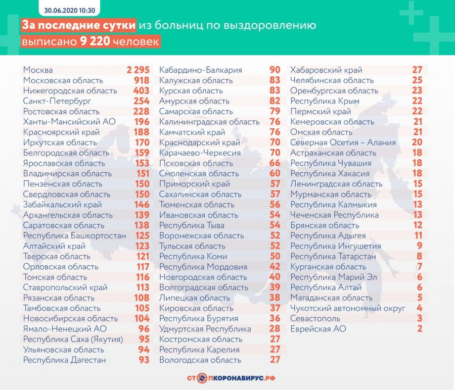 Примечательно, что число выздоровевших за сутки на 30% превышает количество зараженных – 9220 пациента (всего – 412 650).