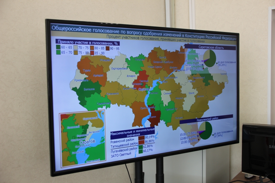 В Саратовской области явка избирателей на голосовании по поправкам к Конституции достигла 72,18%. Об этом стало известно сегодня, 1 июля, во время брифинга руководителя избирательной комиссии Саратовской области Ирины Романовой по вопросам проведения Всероссийского голосования по поправкам в Конституцию РФ.