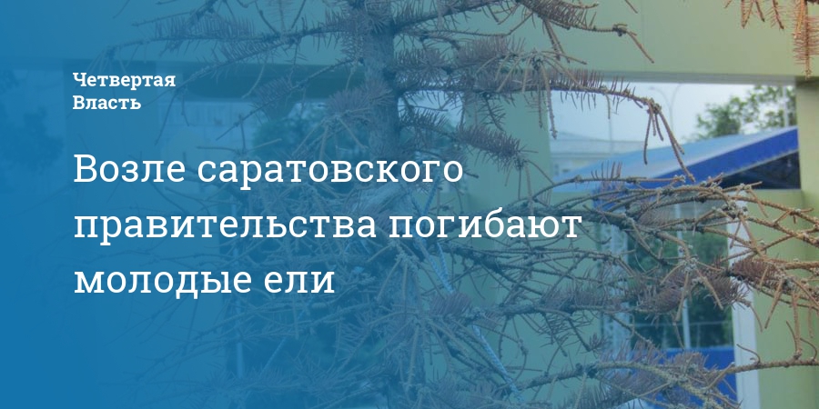 В центре Саратова, напротив здания правительства, засыхают молодые ели, гибнут, по меньшей мере, 4 дерева.