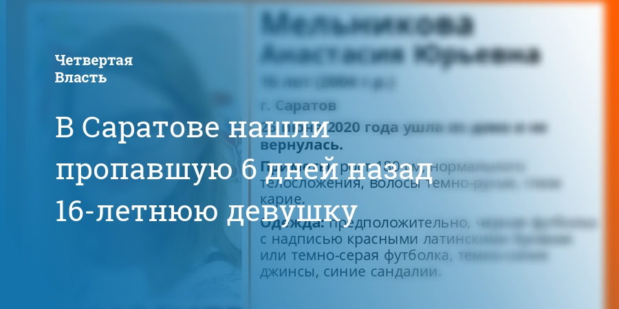 В Саратове нашли пропавшую 6 дней назад 16-летнюю девушку