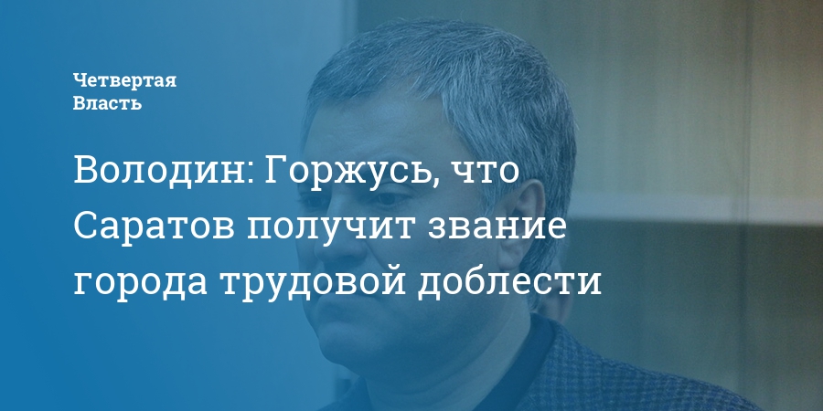 Председатель Государственной думы России Вячеслав Володин поддержал решение президента Владимира Путина о присвоении Саратову почетного звания «Город трудовой доблести». Об этом сообщает пресс-служба Госдумы.