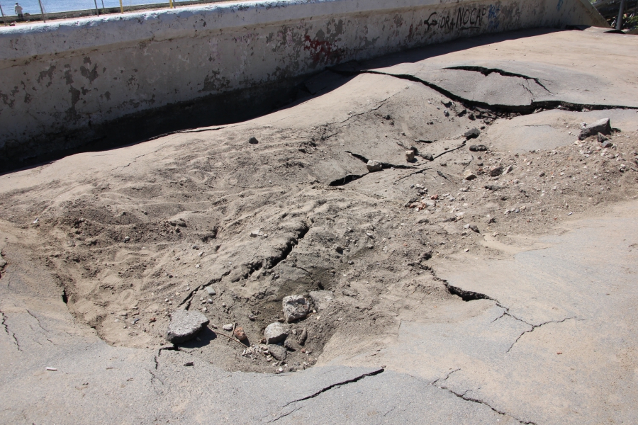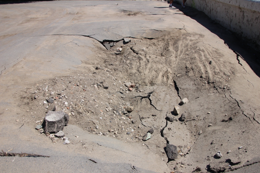 У центра пляжных видов спорта все еще остаются последствия затопления после ливня в ночь на 29 июня. Крупные куски асфальта, которые вода вытащила из-под тротуара, и провалы вымытых почв до сих пор не исправлены.