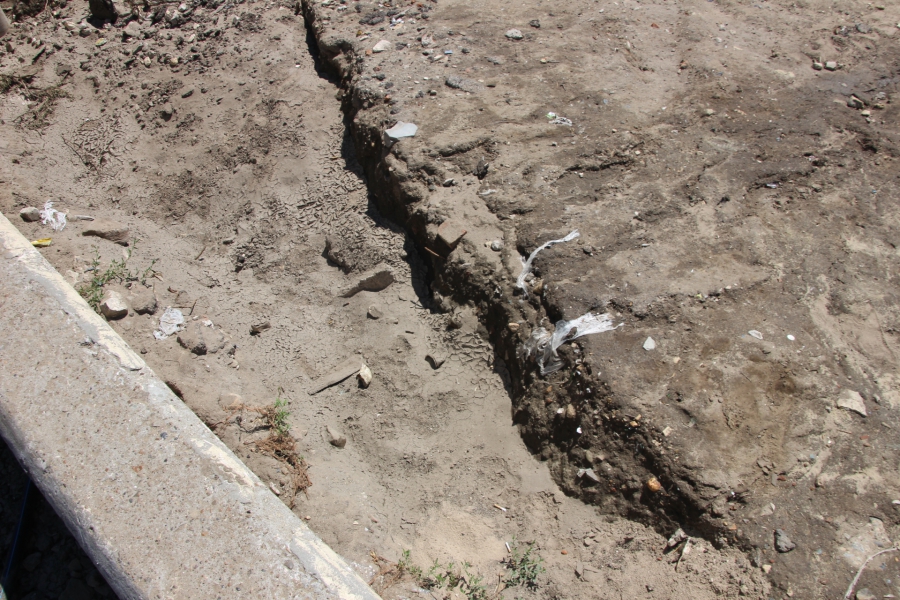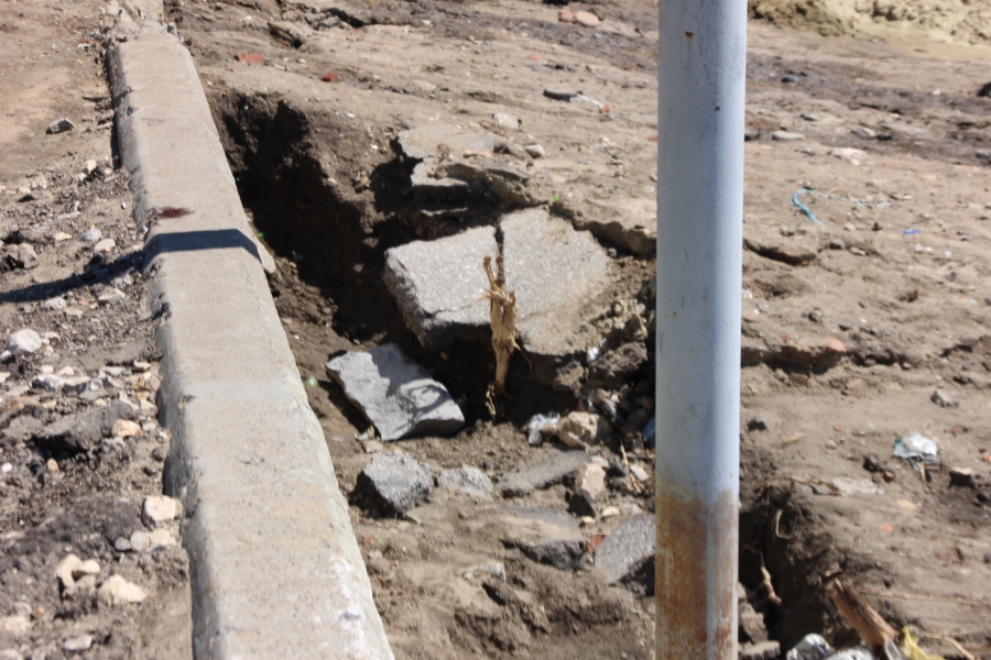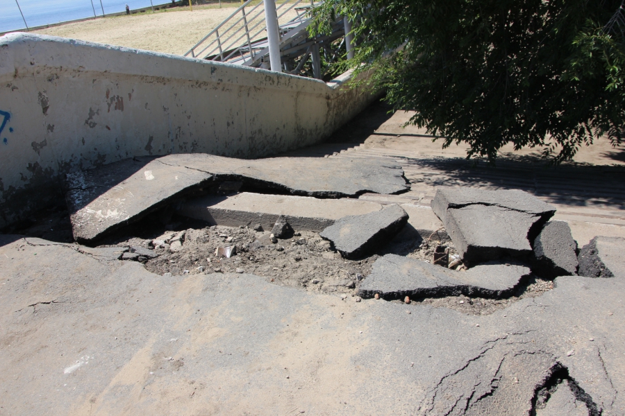 С другой стороны, где стекающие со склона воды смыли в Волгу песок, остаются зиять ямы. Досыпка песка и грунта не производилась. Из-за этого в этом месте начал выпадать бордюрный камень.