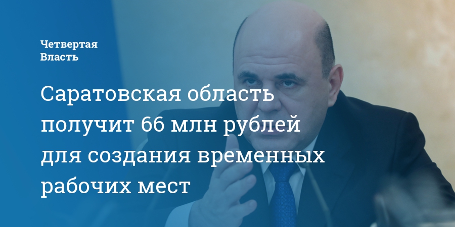 Саратовская область получит 66,3 млн рублей для создания временных рабочих мест в регионе. Соответствующее распоряжение подписал премьер-министр Михаил Мишустин.