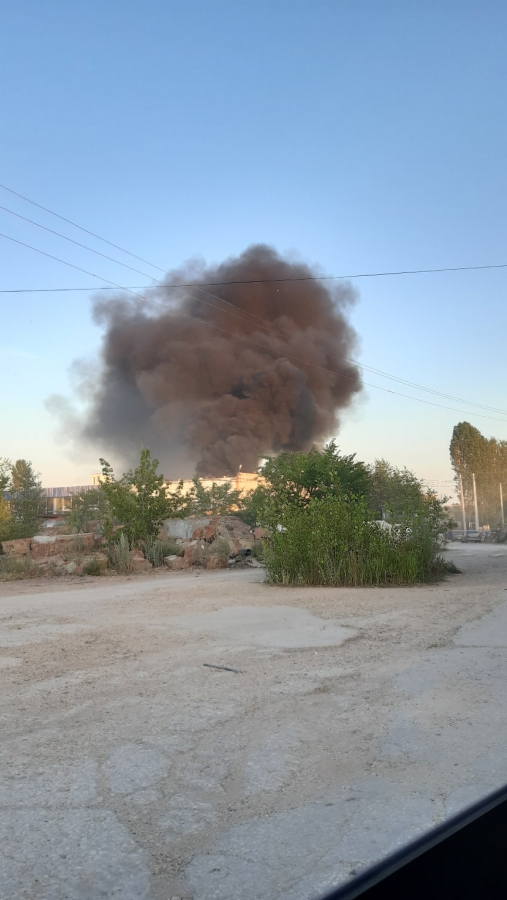 Два очага возгорания возникли на территории бывшего комбината. На месте происшествия работали два пожарных расчета.