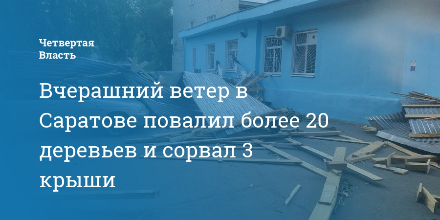 Более 20 деревьев и 3 крыши в Саратове были снесены шквалистым ветром. О таких промежуточных данных рассказали «Четвертой власти» в областной службе спасения.
