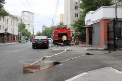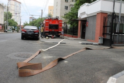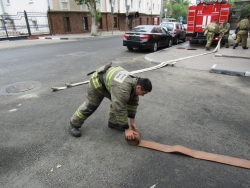 Всего в учениях участвовало 3 пожарных расчета. Сотрудники прокуратуры стояли вне здания, пока пожарные отрабатывали свои действия.
