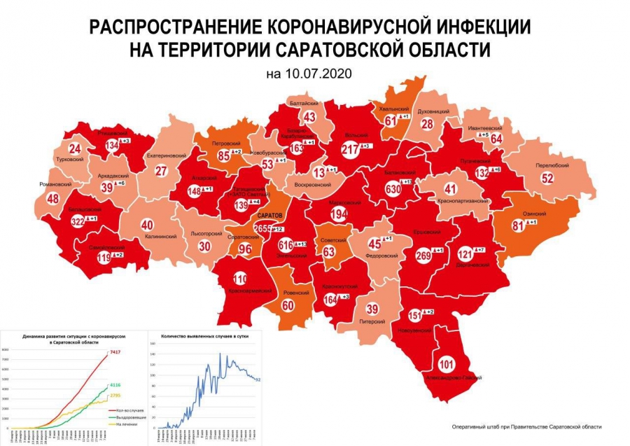 — от 50 до 99 случаев — Саратовский, Петровский, Озинский, Советский, Хвалынский, Ровенский, Ивантеевский, Новобурасский, Перелюбский;