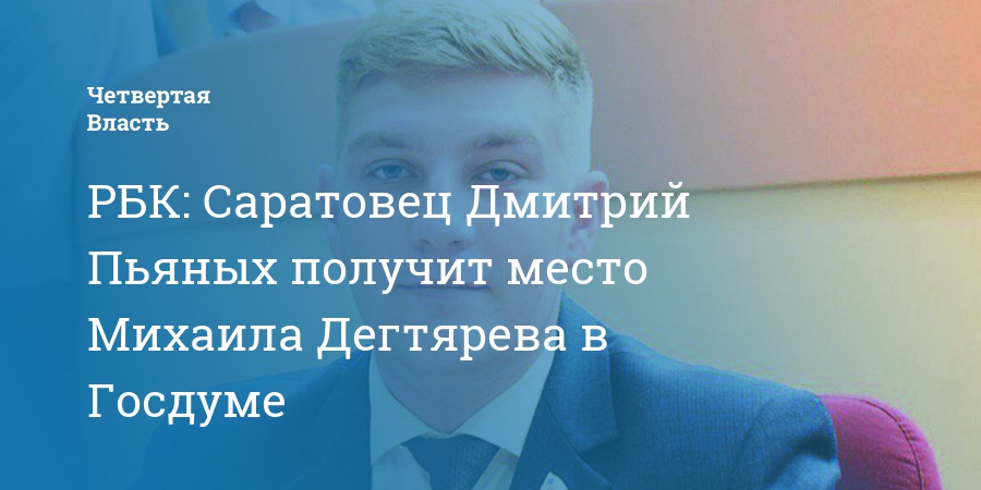 Депутат Саратовской облдумы Дмитрий Пьяных отправится на место Михаила Дегтярева в Госдуму. Ранее Дегтярева назначили врио губернатора Хабаровского края. Об этих перестановках сообщает РБК.