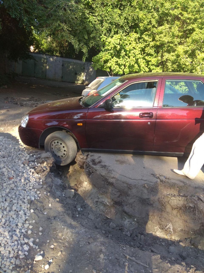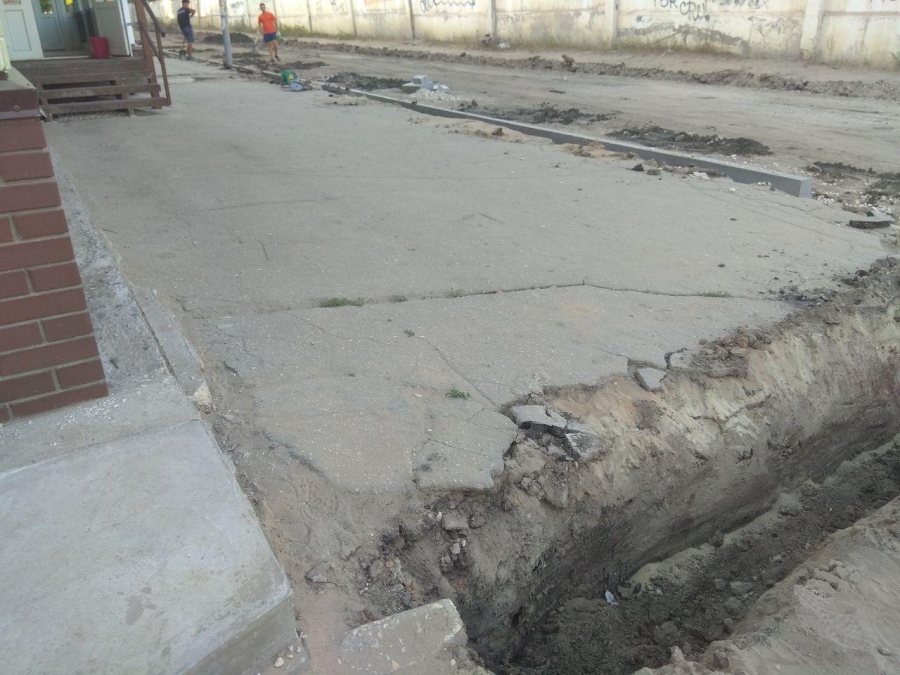 «Каждый день множество людей идет по Киевскому проезду до остановки общественного транспорта на 1-м Жилучастке. Уже несколько дней тротуар перерыт глубокими траншеями, тут меняют бордюры, дорога стала совершенно непроходимой. Я видел, как мамашки с трудом форсируют препятствия с колясками, не говорю уже про пожилых людей, автомобили, которые выезжают на улицу со дворов, также могут угодить в траншеи. Знаю, что на днях были такие случаи. Да вот только сегодня на моих глазах одно авто попало в такую ловушку. Я все понимаю, чудесно, что наконец-то делают дороги и тротуары, но надо же при этом думать и о людях, предусмотреть какие-то временные мостики, обходные пути», - рассказал местный житель.