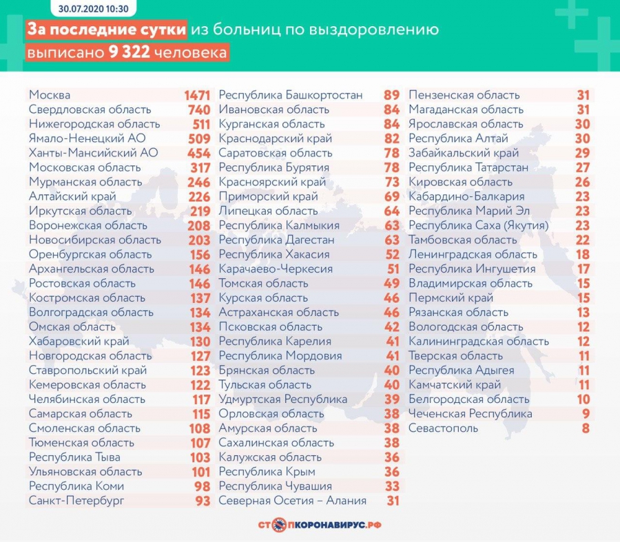 Всего в России за сутки умерли 129 человек, за период пандемии – 13802. Вылечились за сутки 9322 пациента, в общей сложности – 629 655. Прирост зараженных составил 5509 человек, а всего зафиксировано 834 499 случаев.