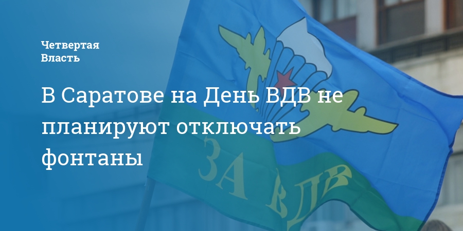 На территории Саратова в День воздушно-десантных войск (ВДВ), который отпразднуют в воскресенье, 2 августа, не будут отключать фонтаны. Об этом заявила «Четвертой Власти» пресс-секретарь главы города Татьяна Плющева.