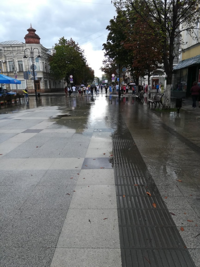 На приложенных к постам фотографиях и видеозаписи вода стоит на участках в районе пересечения пешеходной зоны с Радищева, Вольской и Чапаева. При этом над ливневками образовались большие лужи, мешающие передвижению прохожих. Комментаторы отметили, что канализация не справляется с количеством осадков из-за неудачного проектирования, что сказалось на пропускной способности. Впрочем, уже через некоторое время вода полностью ушла.
