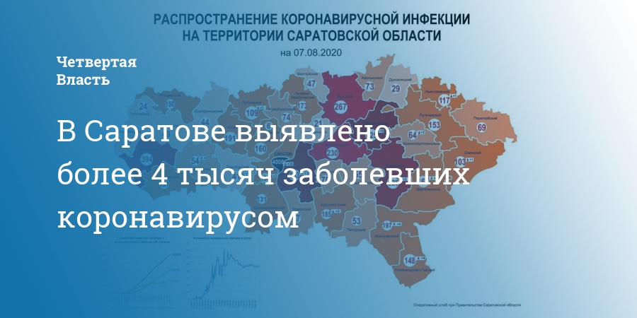 Количество больных COVID-19 в Саратове достигло 4008 человек. Это следует из обновленной карты распространения инфекции на территории Саратовской области.