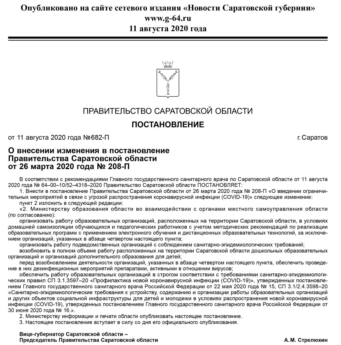 С сегодняшнего дня, 12 августа, на территории Саратовской области все детские сады начали полноценную работу после длительного периода ограничений, введенных в марте из-за коронавируса. Соответствующий документ, подписанный главой правительства области Александром Стрелюхиным, обнародован на официальном публикаторе.