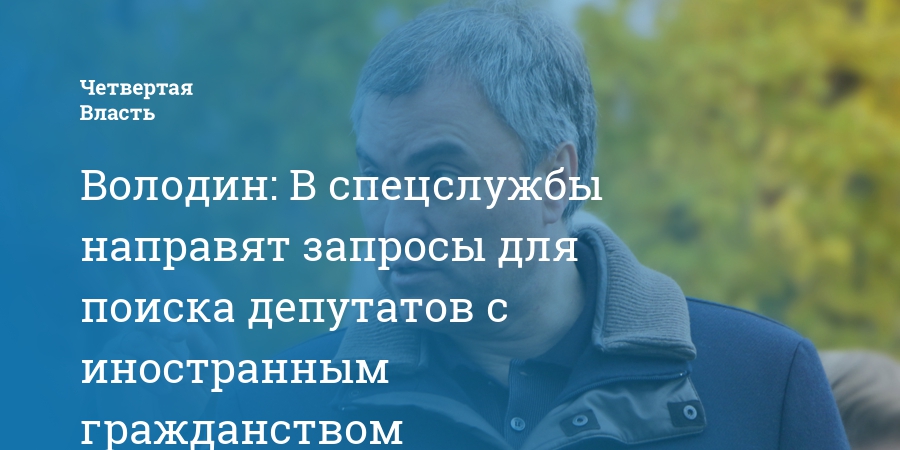 Председатель Госдумы Вячеслав Володин поручил Комитету по безопасности и противодействию коррупции направить запросы в спецслужбы, чтобы найти депутатов с иностранным гражданством. Как сообщается на сайте Госдумы, запросы направят в МИД (Министерство иностранных дел), МВД (Министерство внутренних дел), ФСБ (Федеральная служба безопасности) и СВР (Служба внешней разведки).