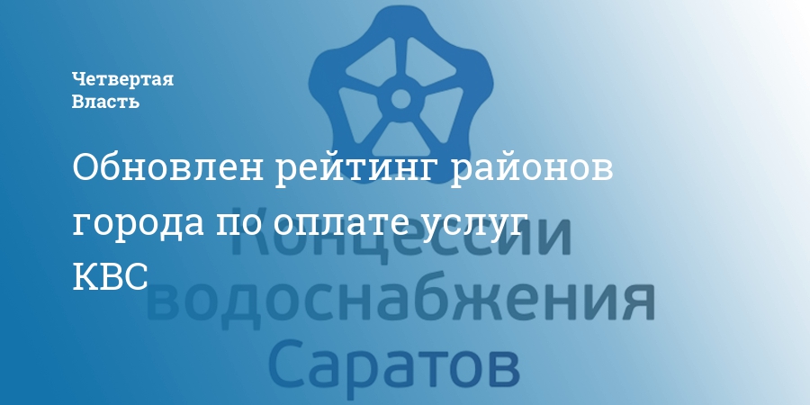 ООО «Концессии водоснабжения – Саратов» обновили рейтинг районов города по оплате услуг водоснабжения и водоотведения. При составлении рейтинга учитывалась история погашения платежей, процент собираемости и задолженность управляющих организаций, ТСЖ и ЖСК, сформировавшаяся за период с 1 января 2018 года по 01 июля 2020 года. Места в рейтинге определены пропорционально количеству управляющих жилым фондом компаний, обслуживающих дома на территории каждого конкретного района.