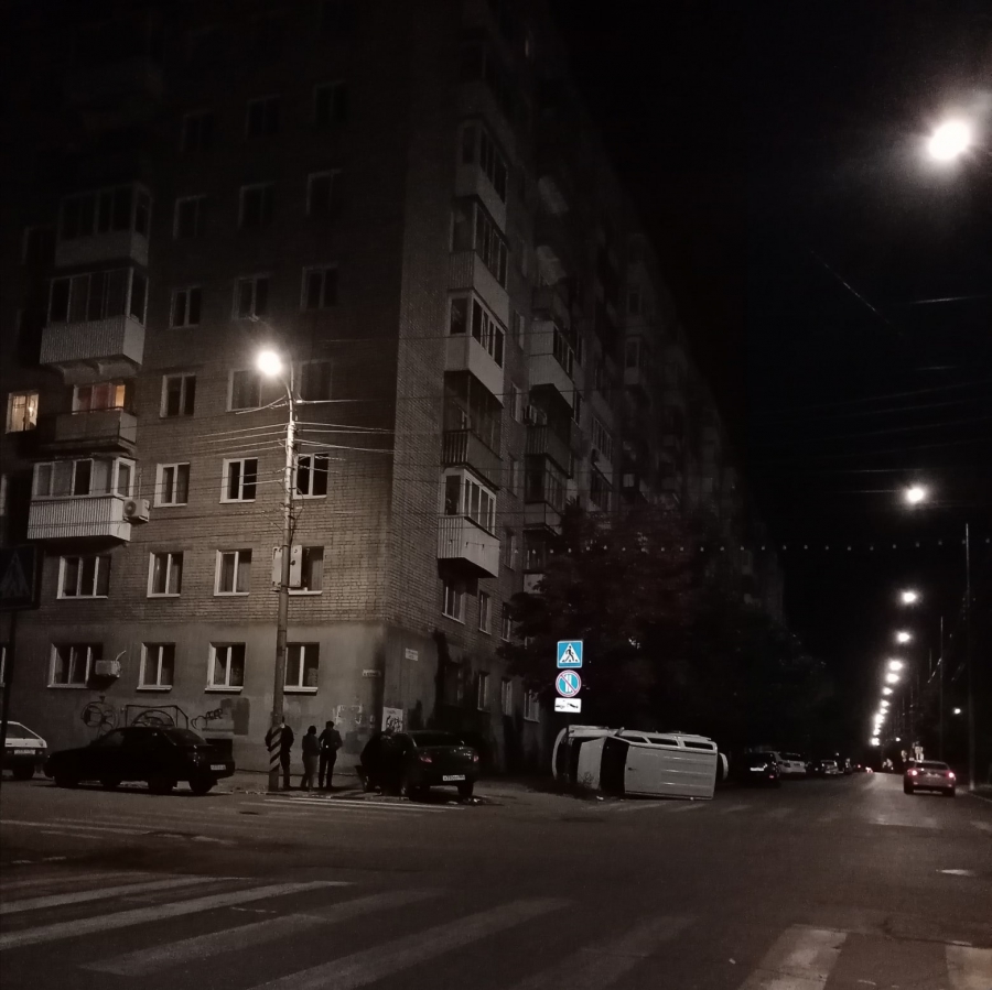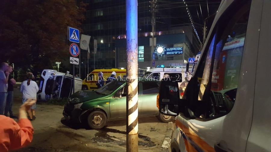 Вчера, 18 августа, в центре Саратова произошло столкновение двух автомобилей, после чего один из них опрокинулся на бок.
