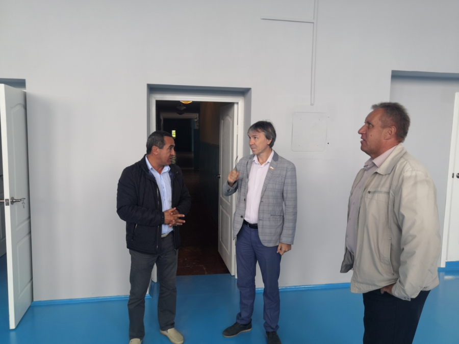 Приемка спортзала депутатом прошла параллельно с официальной сдачей объекта. Работы здесь проводились в рамках нацпроекта «Образование» по программе ремонта спортивных залов. Депутат осмотрел итоги выполненных работ. Так, в спортзале покрасили стены, положили новое покрытие на полы из деревоплит, вставили новые оконные блоки. Кроме косметических работ в самом спортзале, была отремонтирована тренерская комната и раздевалки. Рабочие заменили потолки и заменили всю внутреннюю отделку помещений.