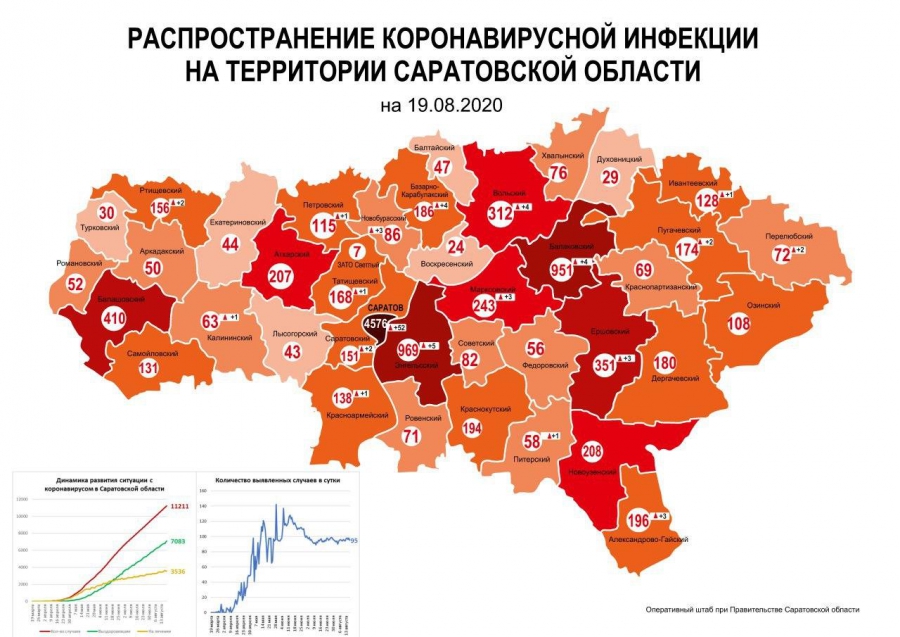 — до 49 случаев — Балтайский, Екатериновский, Лысогорский, Духовницкий, Турковский, Воскресенский и ЗАТО Светлый.