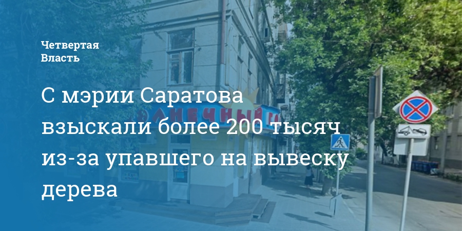 С мэрии Саратова взыскали более 200 тысяч из-за упавшего на вывеску дерева