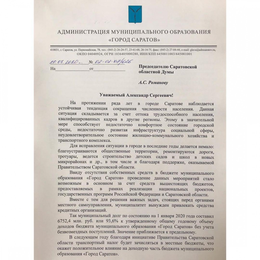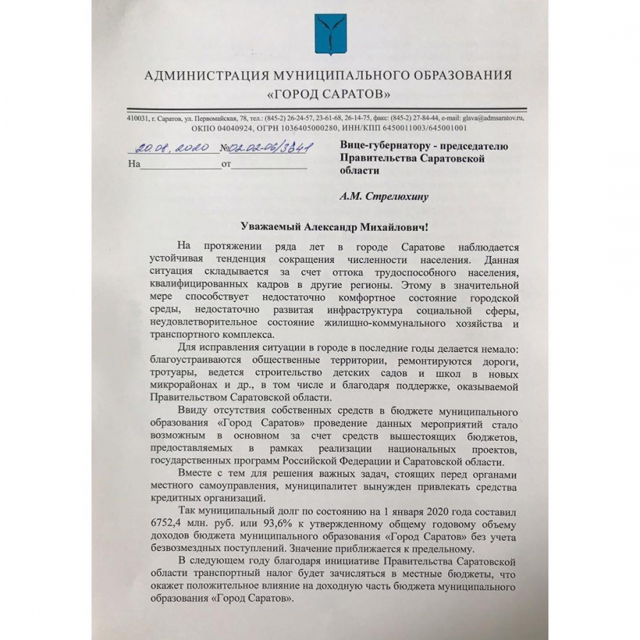 Глава Саратова Михаил Исаев направил обращения в региональное правительство и облдуму для принятия мер по увеличению доходов города. Об этом сообщается в «Инстаграме*» мэра.