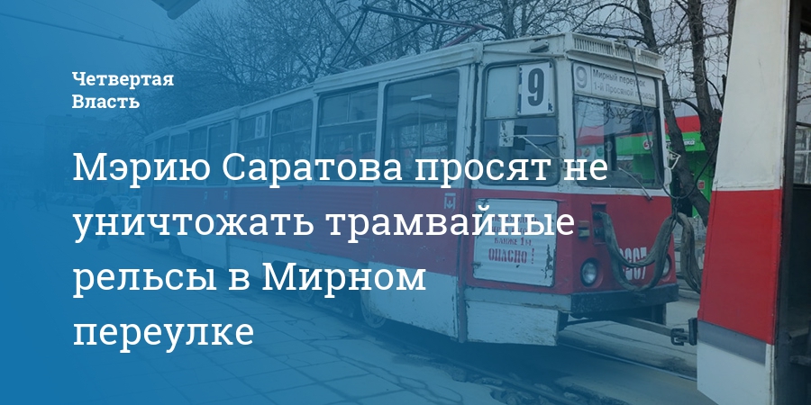 Уничтожение трамвайных рельсов в Мирном переулке в центре Саратова может привести к значительному ущербу МУПП «Саратовгорэлектротранс». Такое письмо сегодня опубликовало транспортное сообщество «Трамваи и троллейбусы Саратова» в соцсети «ВКонтакте».