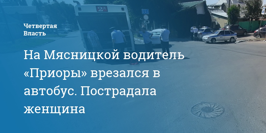 На Мясницкой водитель «Приоры» врезался в автобус. Пострадала женщина