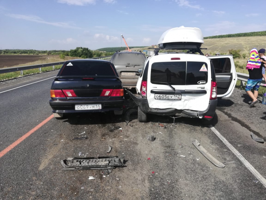 По предварительным сведениям, около 12.55 на 244-м километре трассы Сызрань-Саратов-Волгоград мужчина 1946 г.р. за рулем «ВАЗ-2115» не соблюдал безопасную дистанцию до впереди движущегося транспорта. Это привело к столкновению с автомашиной «Лада Ларгус» под управлением водителя 1981 г.р. После этого «Ларгус» врезался во стоявший впереди «Хендэ Санта Фе», за рулем которого находился гражданин 1992 г.р.