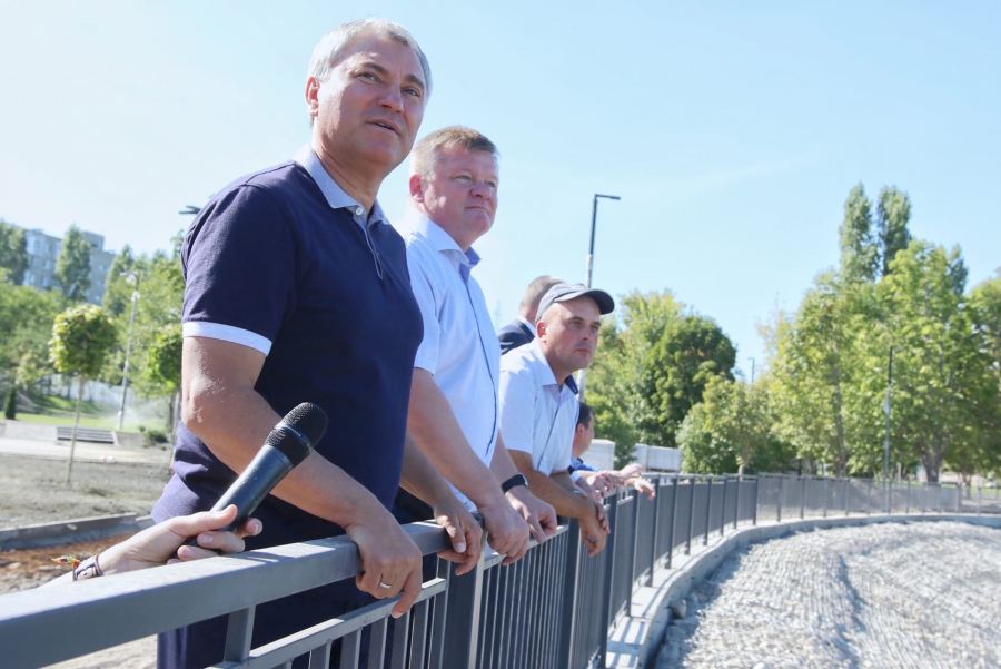 В сквере будут разные спортивные и детские зоны, велодорожка. Вячеслав Володин осмотрел облагороженный пруд с фонтаном, набережную. Подрядчик пообещал, что до конца сентября работы в парке будут закончены.
