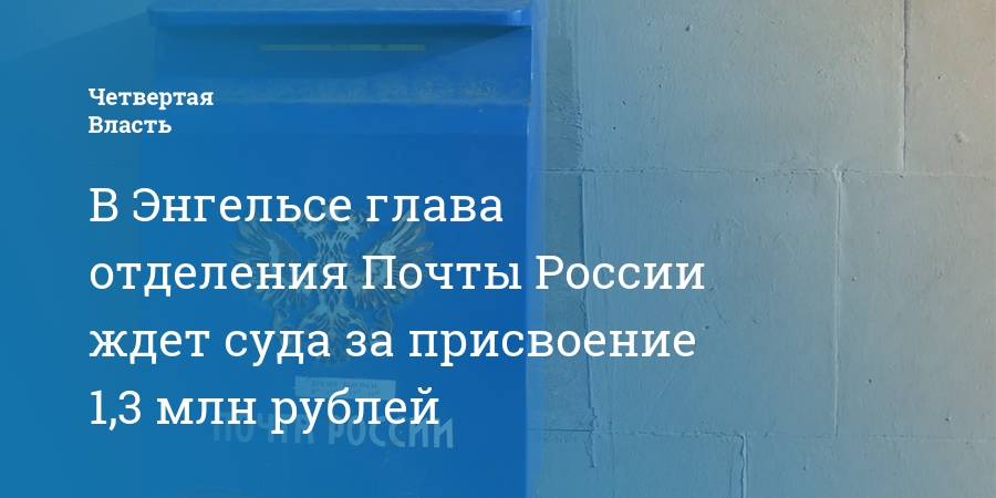 В Энгельсе глава отделения Почты России ждет суда за присвоение 1,3 млн рублей