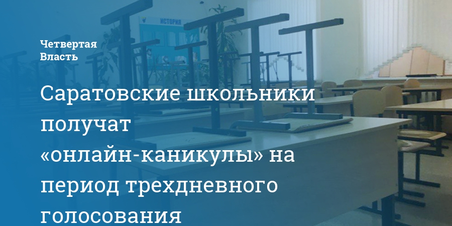 В Саратовской области ученики школ, где будет проводиться трехдневное голосование, с большой долей вероятности будут освобождены от занятий очно и переведены в онлайн - формат. Об этом сообщают сотрудники пресс-службы министерства образования Саратовской области корреспонденту «Четвертой Власти».