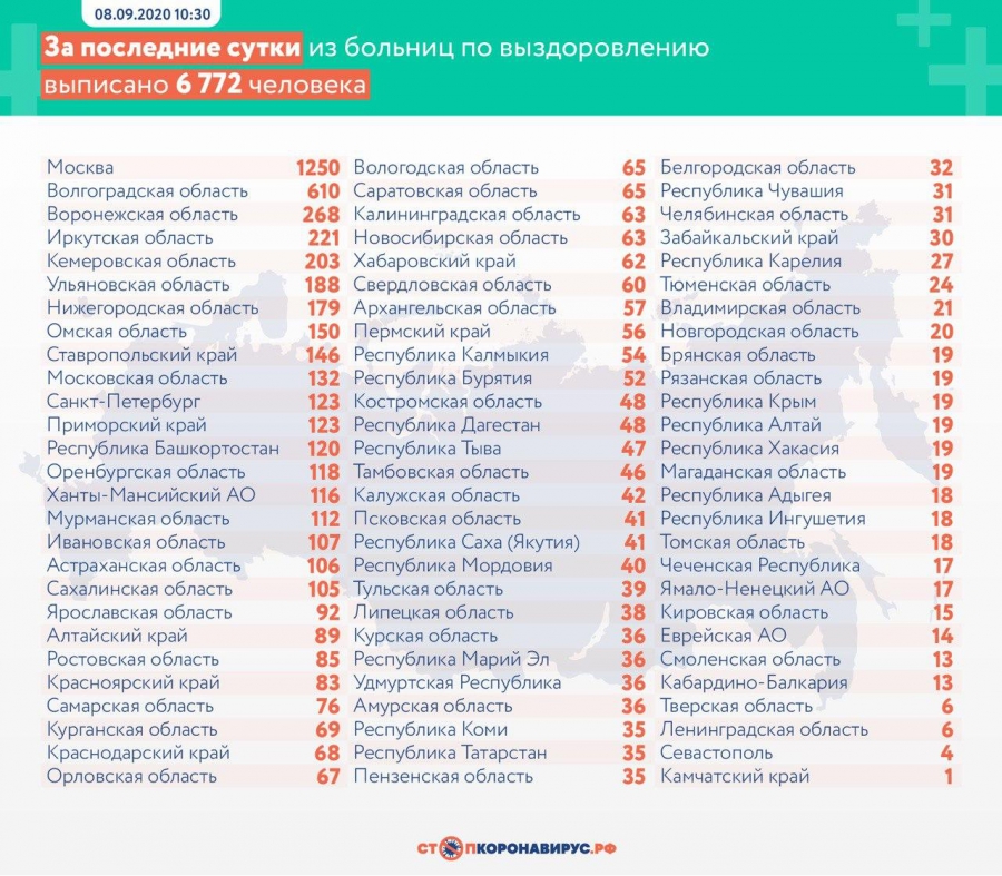 В Саратовской области за сутки прибавилось 98 выявленных случаев, общее число составляет 13 166. По приросту наша область делит 11-12 места с Самарской (+98). Примечательно, что в соседних регионах примерно те же цифры: Волгоградская область – 95 за сутки, Пензенская область – 94, Оренбургская область – 89, а также Ульяновская область – 99, Воронежская область – 108. Лишь в Тамбовской области всего 27 случаев.