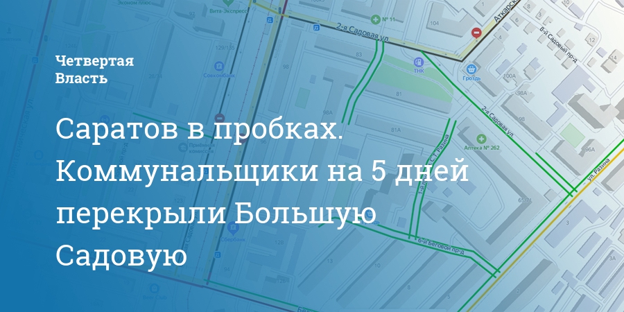 Саратов в пробках. Коммунальщики на 5 дней перекрыли Большую Садовую