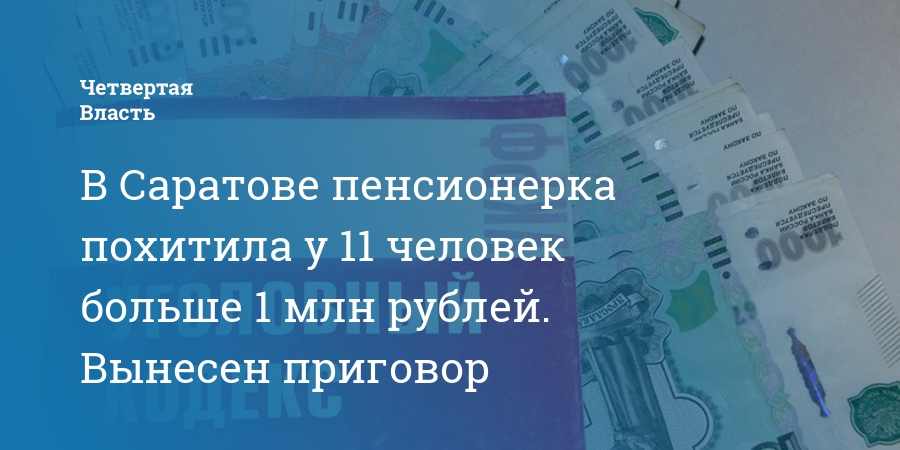 В Саратове пенсионерка похитила у 11 человек больше 1 млн рублей. Вынесен приговор