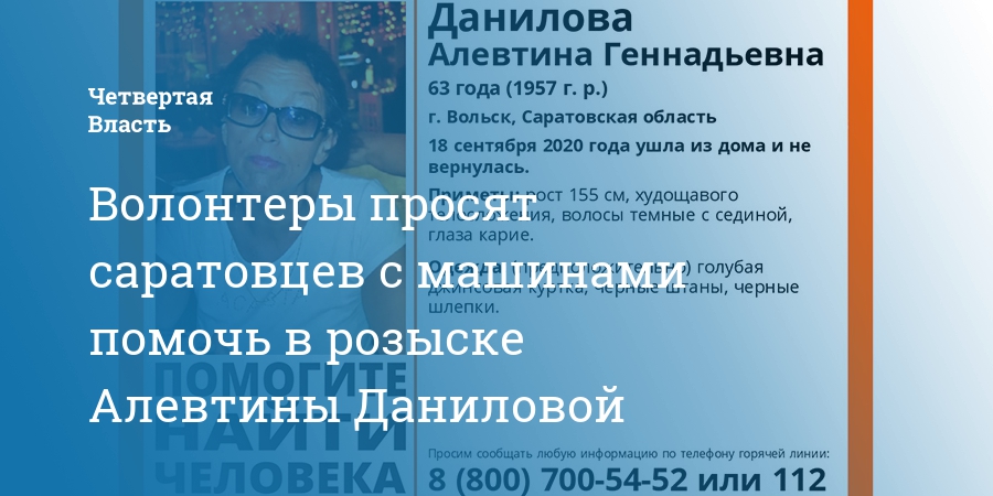 Волонтеры просят саратовцев с машинами помочь в розыске Алевтины Даниловой