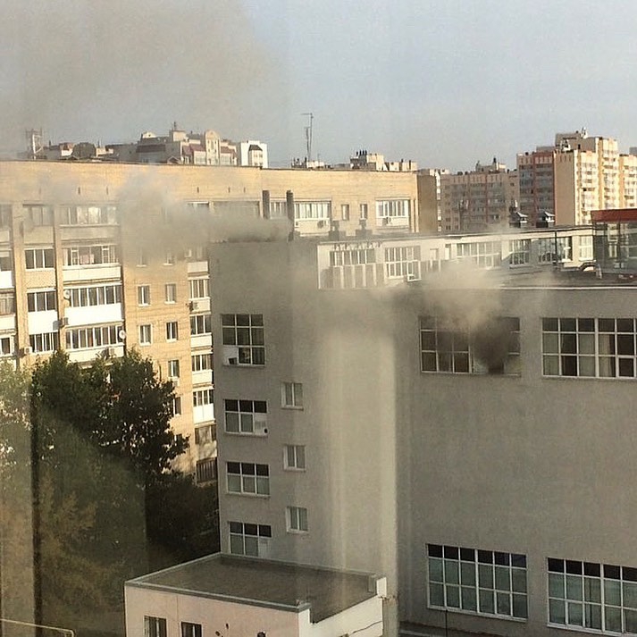 Пока известно, что очаг возгорания расположен в гардеробе на 4-м этаже. Оттуда из окон наблюдается дым. Площадь возгорания составляет на данный момент 10 квадратных метров.